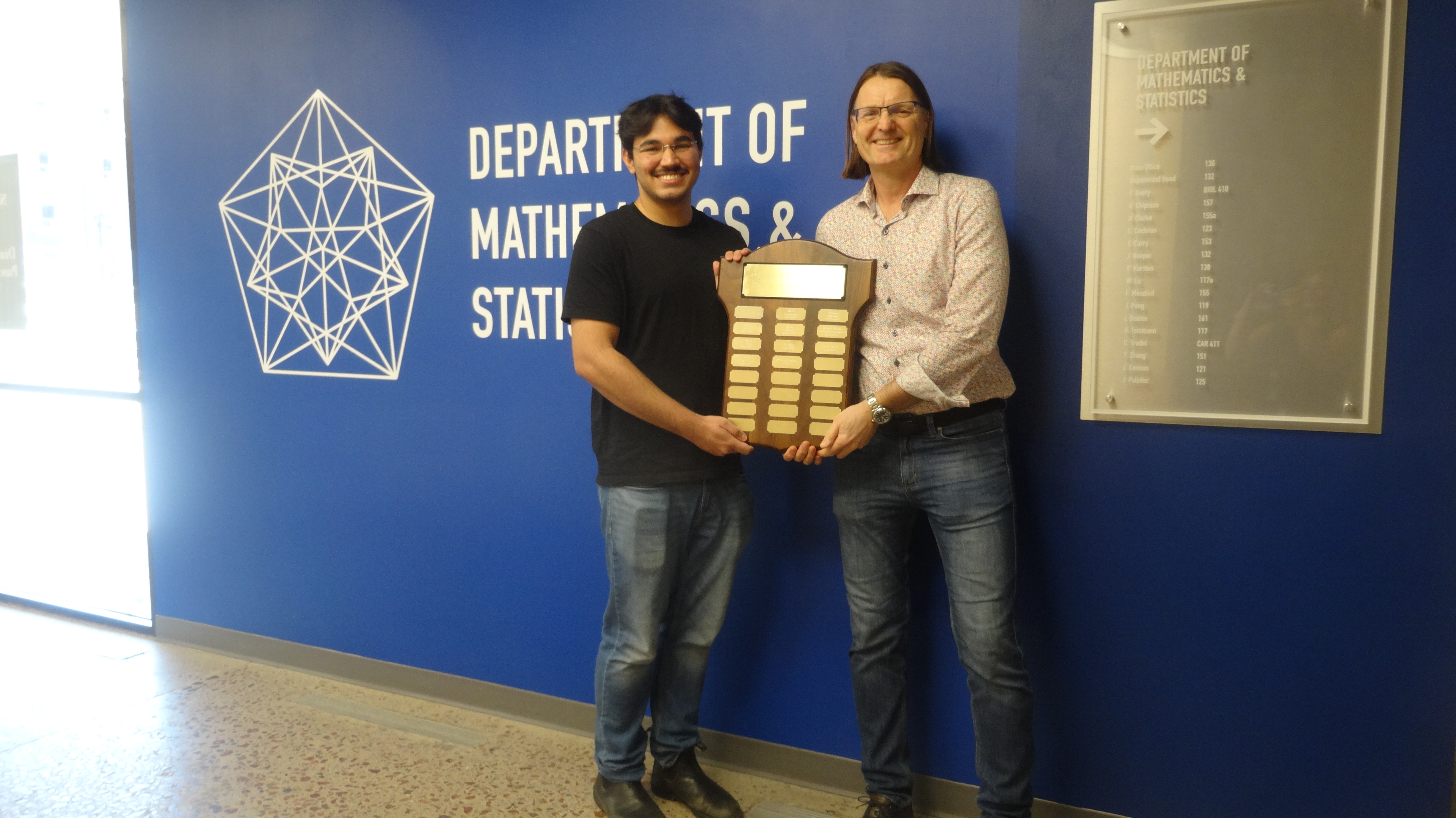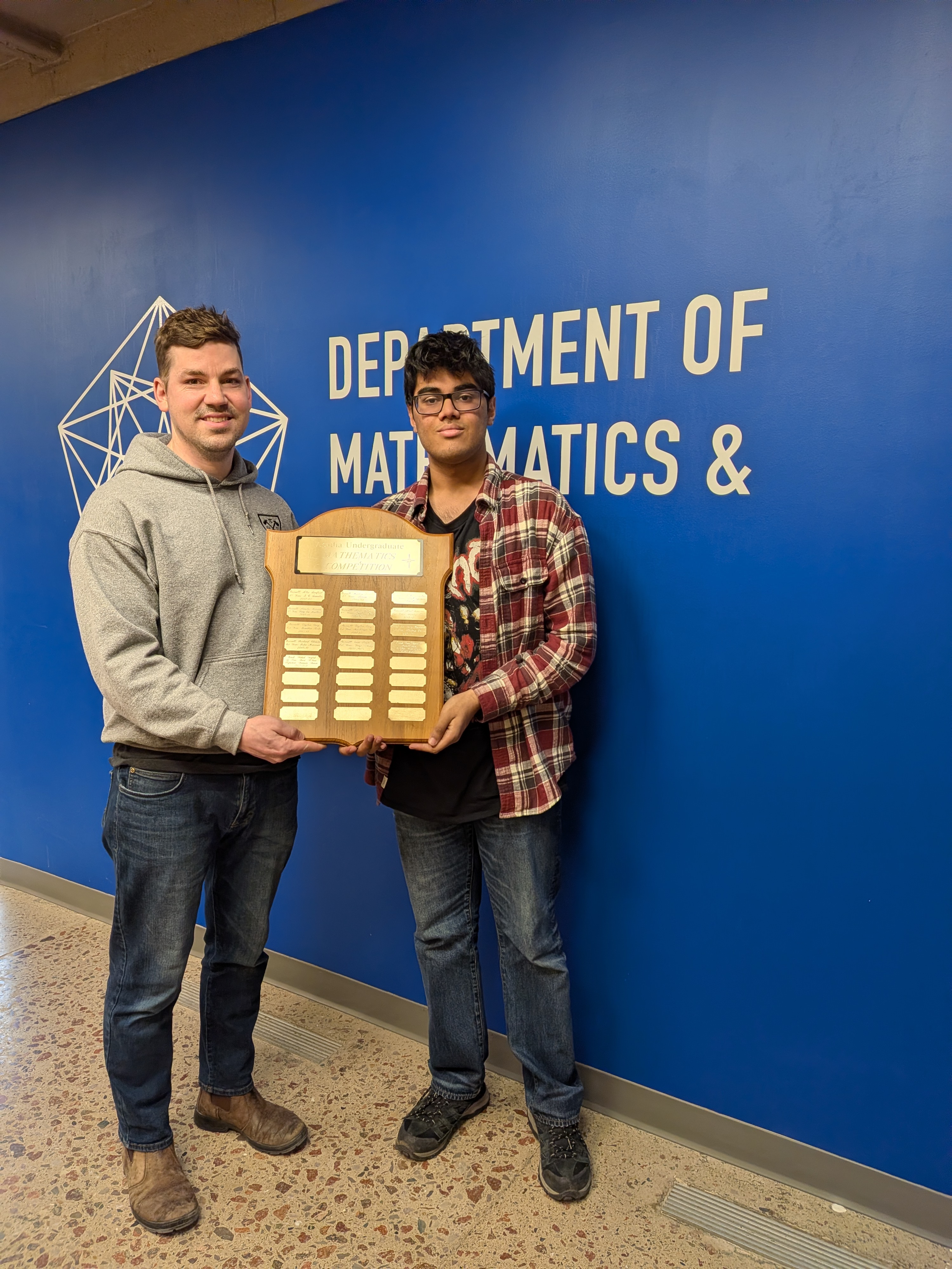 Catherine Stanley Award Winner - 4th Year Math Major Nimar Bajwa with Department Head, Dr. Richard Karsten (Dr. K)